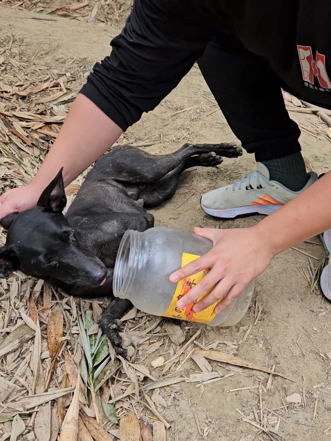 狗狗的頭被塑膠桶套住五天,沒吃沒喝,只能呼吸