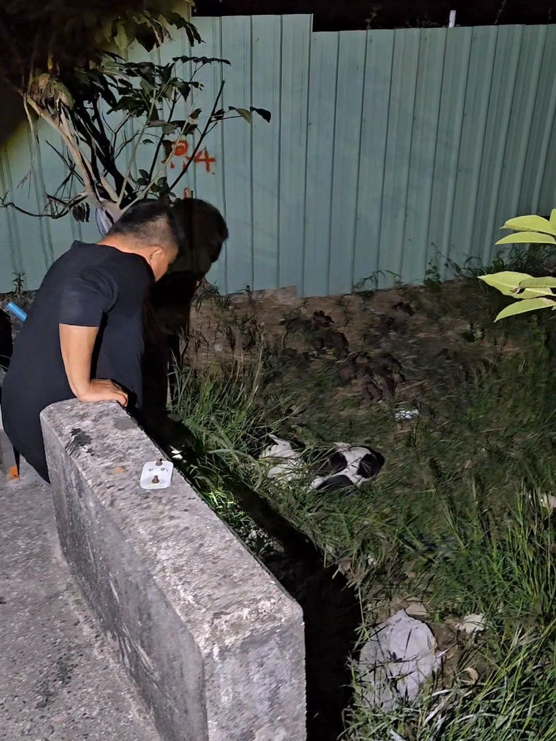 昨晚通報這隻乳牛色的狗狗被車撞倒在路邊,趕到現場發現他又掉落到一旁的草叢裡,可能太冷想在草叢裡取暖