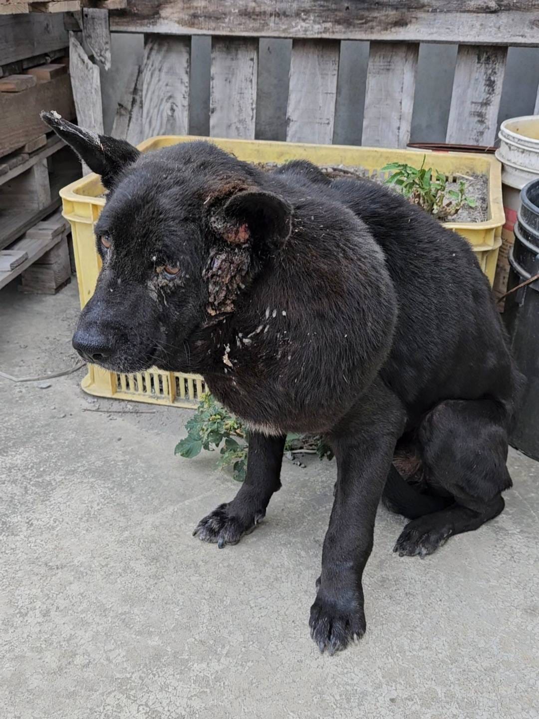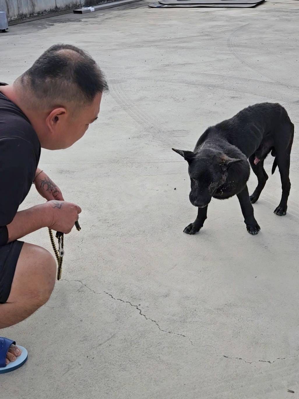 彰化秀水居民通報,有一隻小黑中午都會來工廠討食,他的脖子有一顆像足球大的腫瘤,行動有些緩慢,看起來身體好像很不舒服