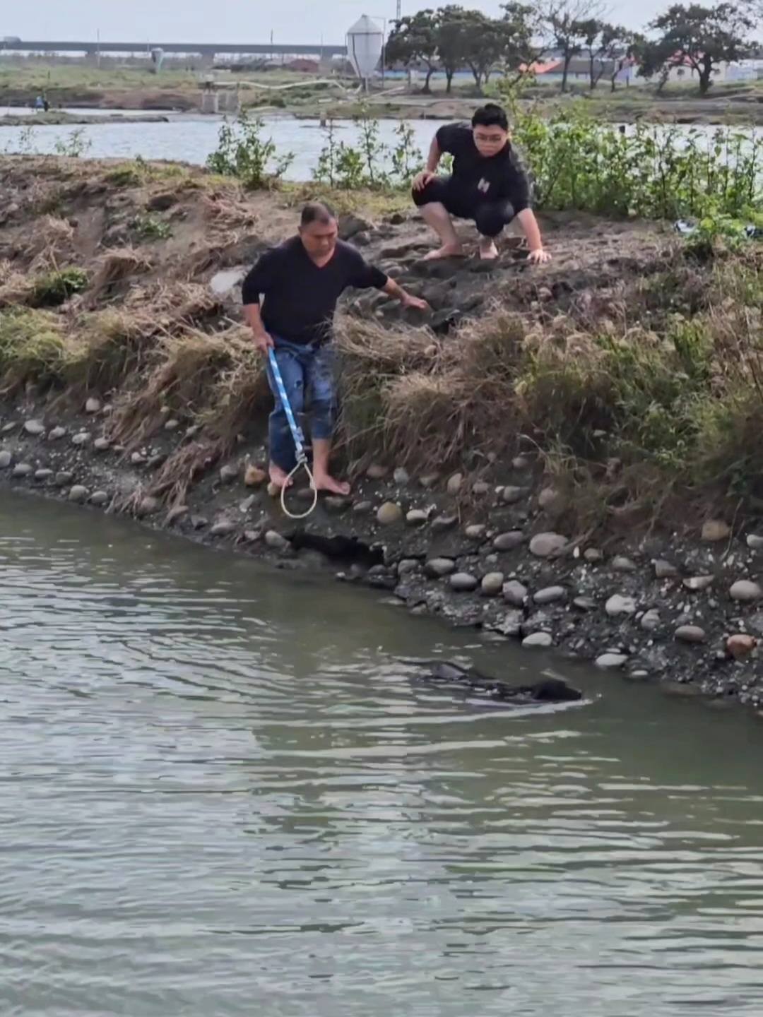 我趕緊拿了工具把他救上來,過程中小狗一度怕生要逃避,看他靠著前雙腳在水裡游,下半身明顯骨折