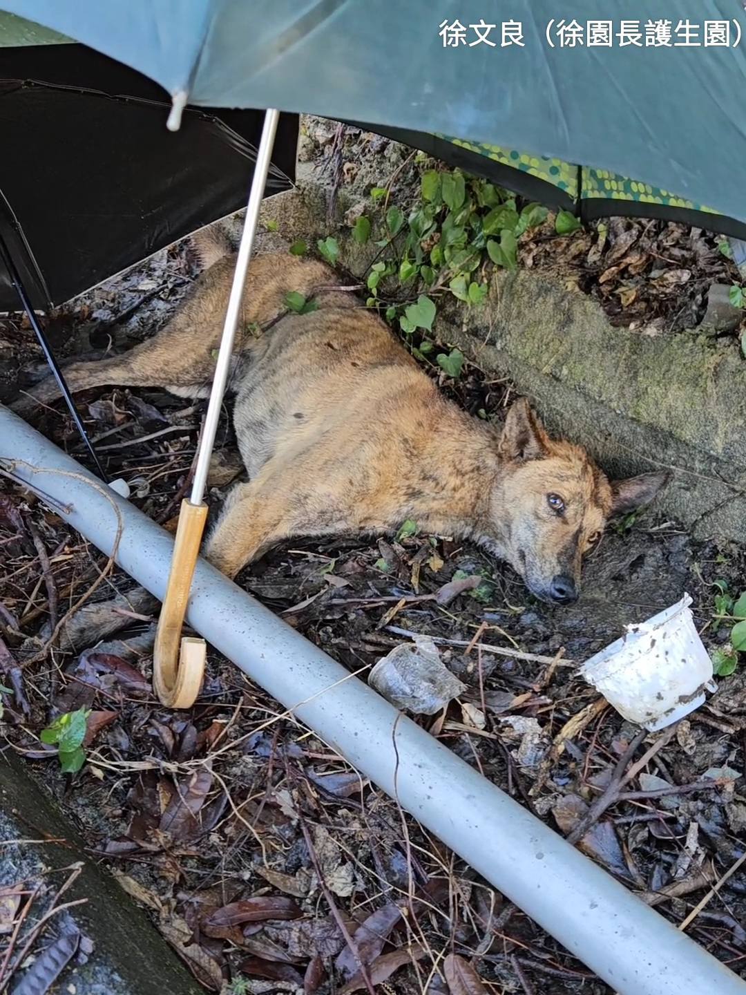 遠遠就聽到狗狗的唉叫聲,小虎身體無法動彈全身溼答答倒在山溝裡至少四天,他一直發出哀嚎聲,希望有人能救救他
